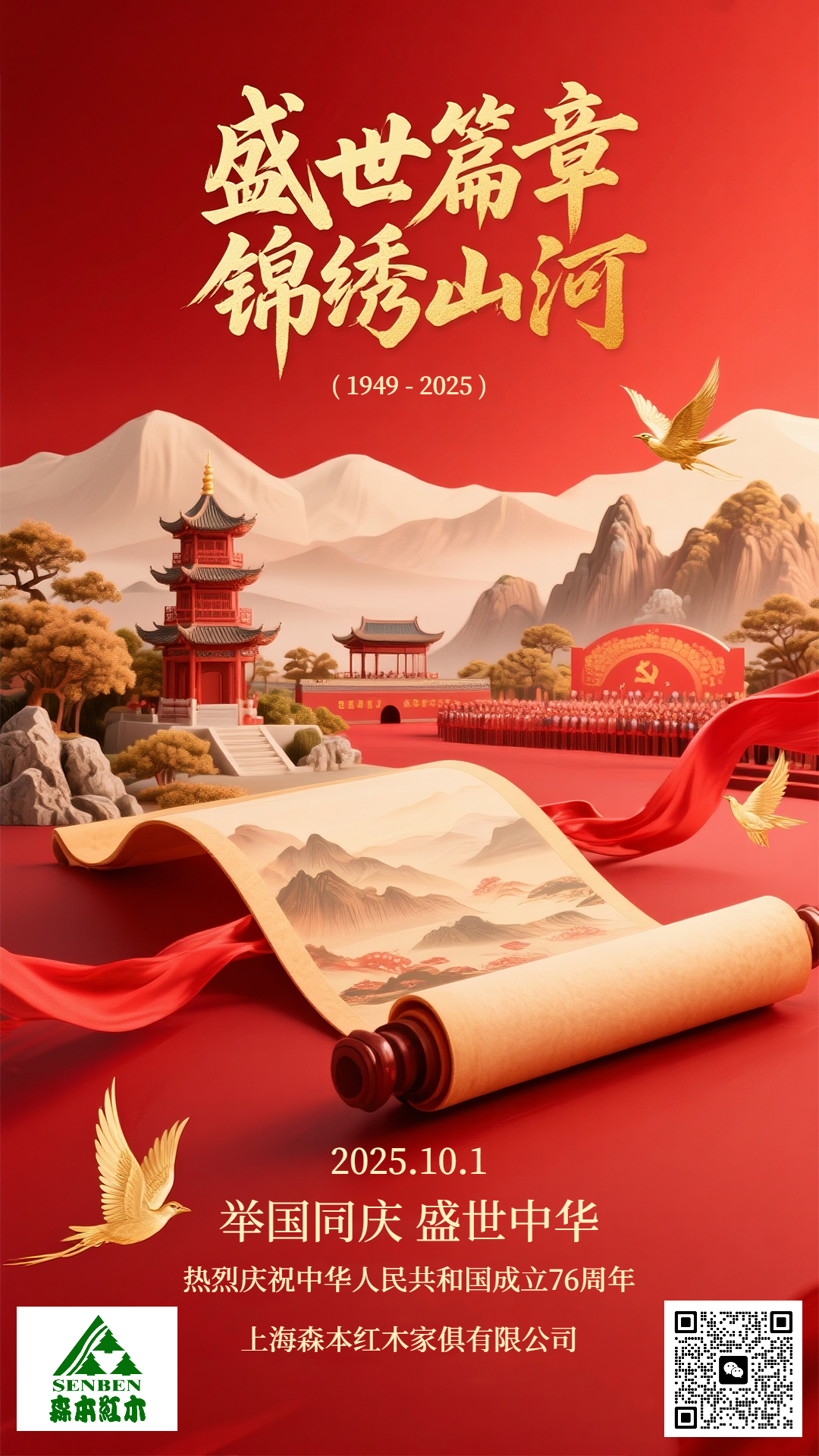 國(guó)逢盛世,家承經(jīng)典。紅木,承載著時(shí)光的厚重與文化的深邃,一如我們?cè)催h(yuǎn)流長(zhǎng)的中華文明,歷久彌新。森本紅木,以木為媒,以藝載道,將對(duì)家與國(guó)的深厚情感,凝練于每一道細(xì)膩的木紋、每一次精準(zhǔn)的榫卯、每一寸溫潤(rùn)的打磨之中。我們打造的,不僅是一件件傳世家具,更是一個(gè)個(gè)充滿溫度與底蘊(yùn)的家庭空間,是國(guó)泰民安、萬(wàn)家團(tuán)圓的美好見(jiàn)證。